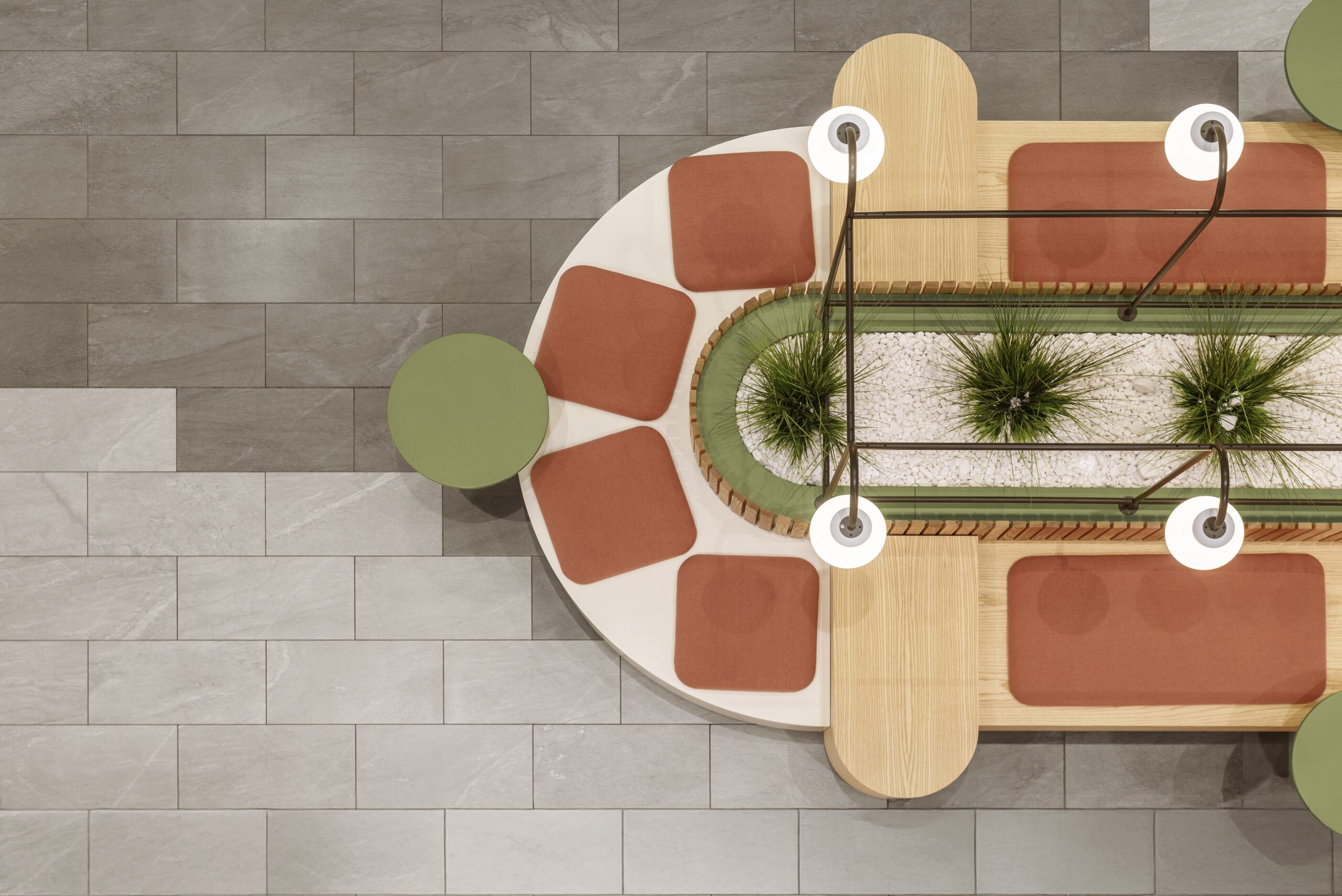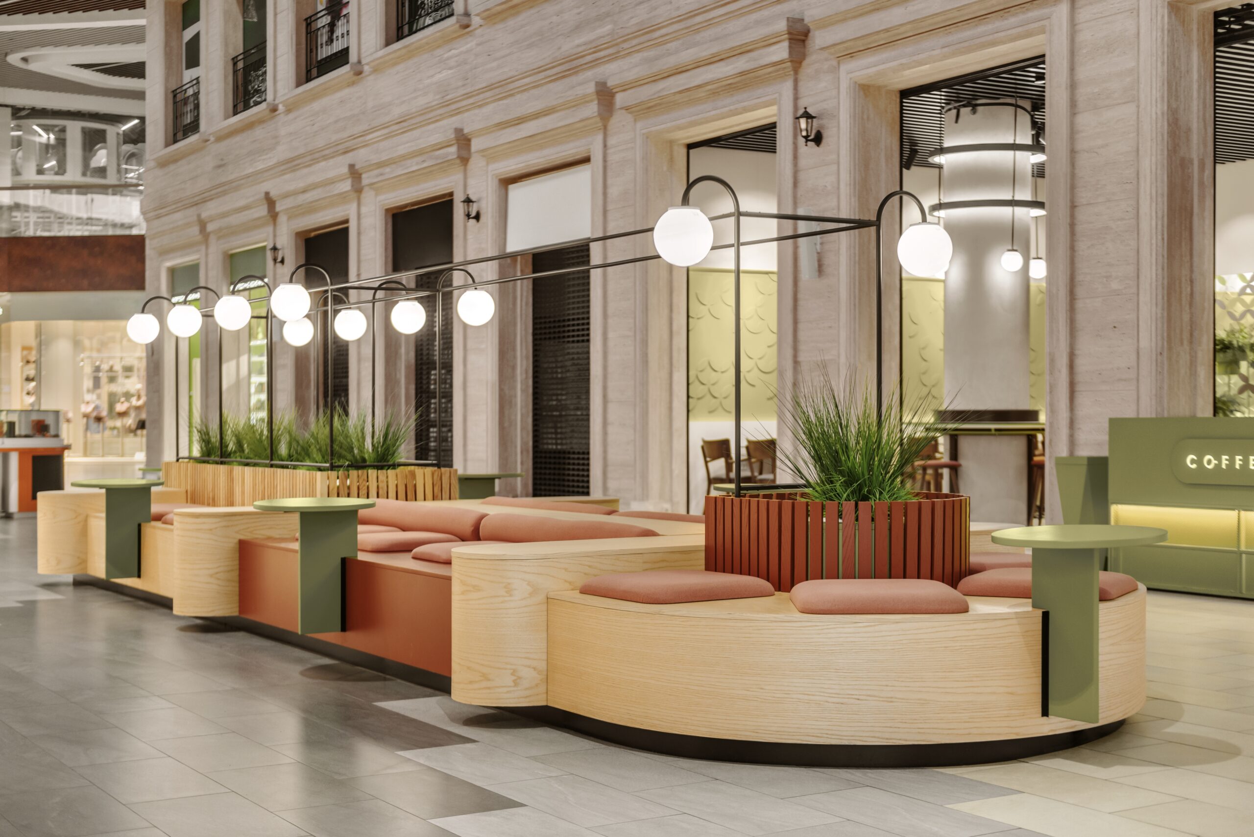 Дизайн впроваджували в двох зонах — інтер’єрній та екстер’єрній — спокійний відпочинок в інтер’єрі і легка пауза на острівній посадці в галереї ззовні. Острівець не тільки приваблює увагу відвідувачів, а й став улюбленим місцем відпочинку у ТЦ.