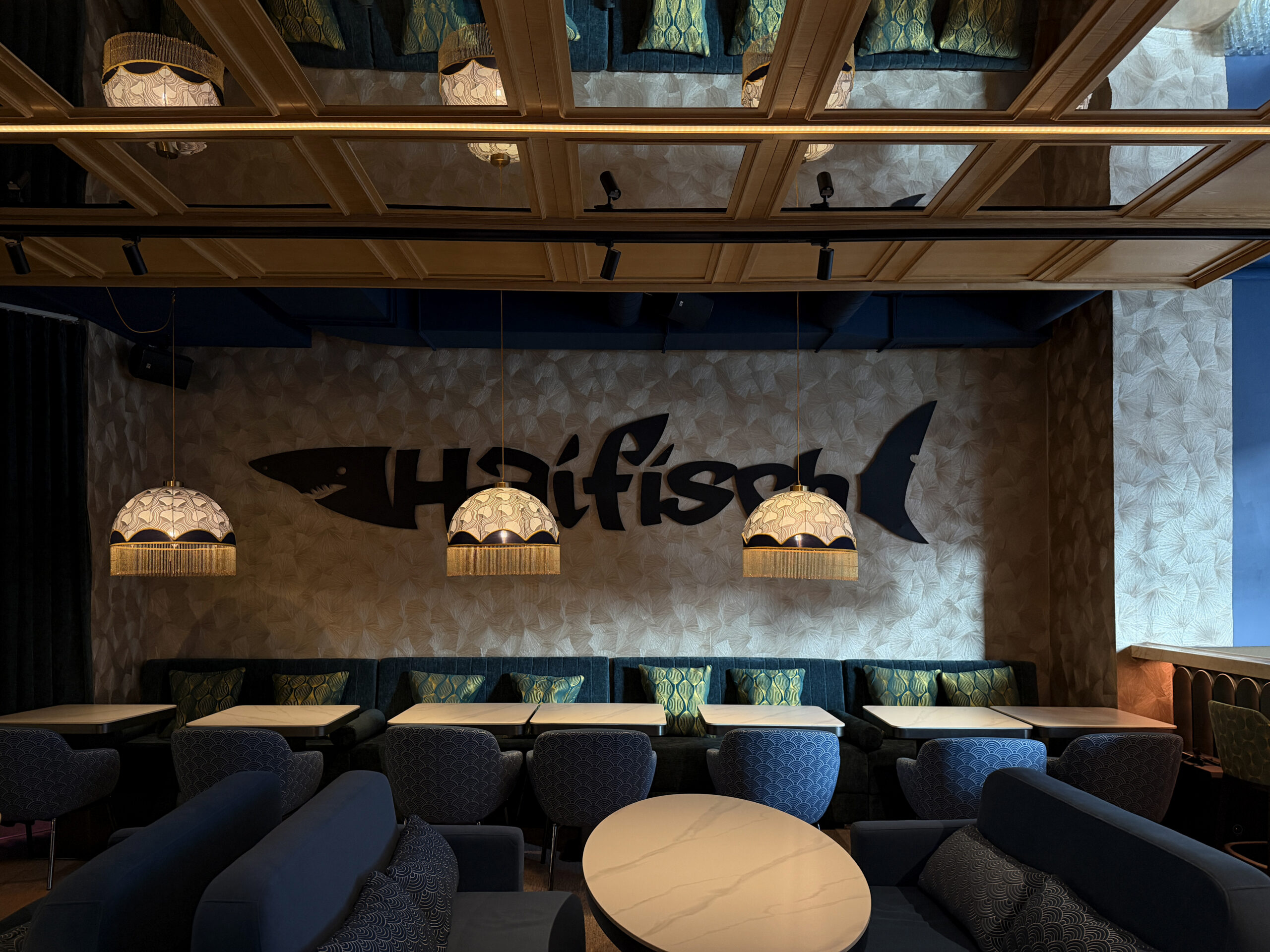 Haifisch — клуб, у якому інтер’єр не просто супроводжує заходи, а створює унікальний настрій, закарбовує його. Простір живий і емоційний, з виразними дизайн-елементами. Світлові сцени роблять кожний вечір оригінальним і неповторним.